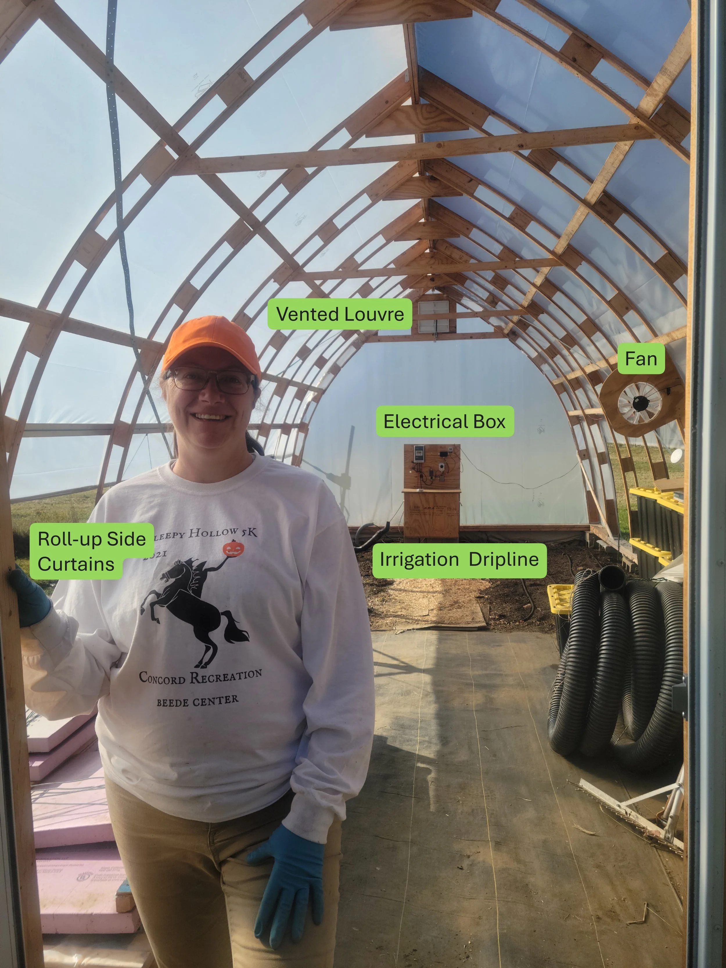 In addition to the crops that we sell, we have a large garden that provides most of the vegetables for our table throughout the year. This garden is really productive, but has seasonal and growing zone limitations. As a result, a high tunnel greenhouse was first on the list of farm infrastructure that we needed build. This was a true DIY project, including the design which was inspired by wooden ship building techniques. Our greenhouse is also off-grid, since the nearest utilities (water, electricity) are more than ~1/4 mile up the road. Our goal was to build a fully functional, automated off-grid greenhouse that we use from the last snowfall (Early April) to the first snowfall (Early Oct) each year. We accomplished this goal in 2023 and we continue to enjoy baskets of produce each season with minimal maintenance.